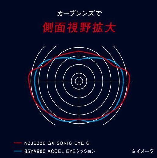 カーブレンズに従来より薄い密着性クッションを採用。レンズ側面も視界がクリアに。